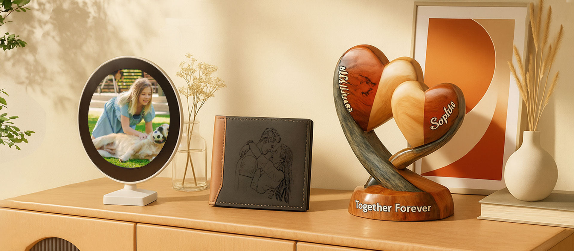 Aangepaste fotoportemonnee voor heren, grijs, gepersonaliseerde cadeaus