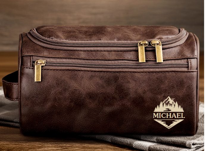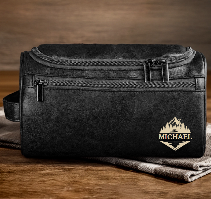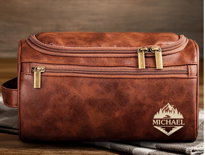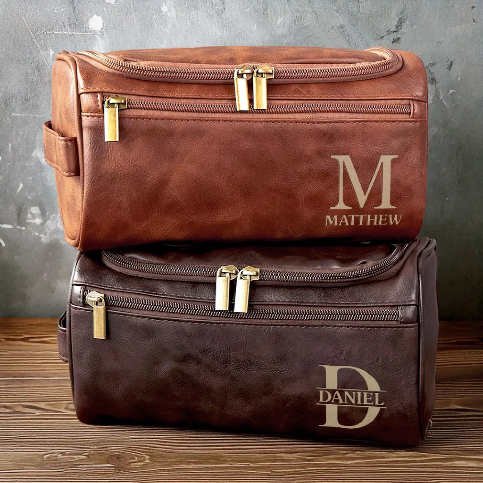 Op maat gegraveerde leren toilettas - Gepersonaliseerde verjaardagscadeaus voor vader, broer, opa, echtgenoot - Voor de man die altijd onderweg is